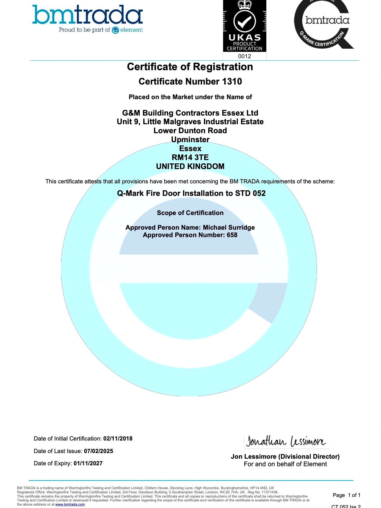 We are BMtrada Approved Fire Door Installers & BMTrada Fire Door Maintainers, Please feel free to contacts us for any requirements and condition surveys