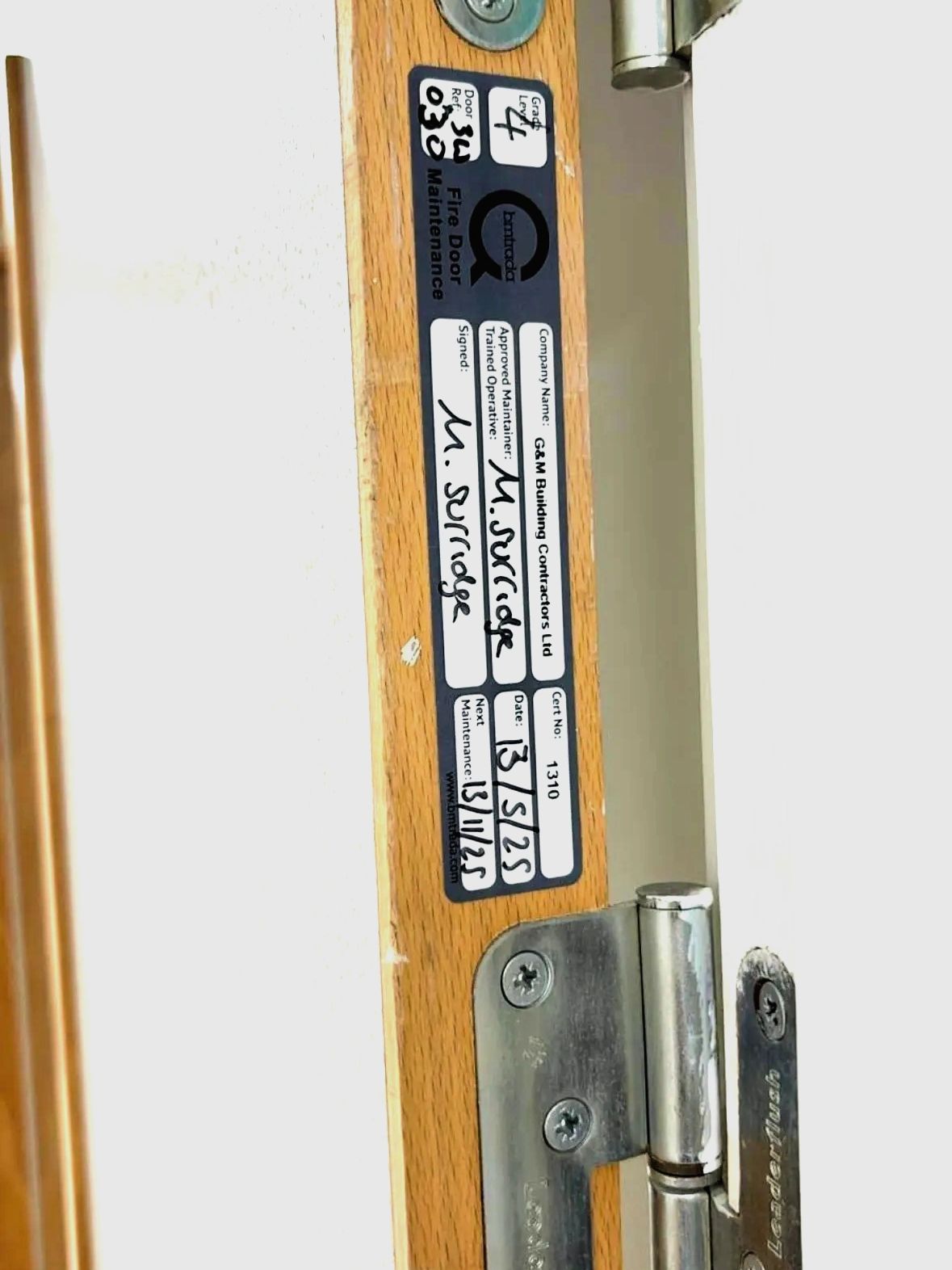Get in touch for all of your fire door condition survey reports, We are certified under the BMtrada Fire Door Maintenance Scheme.